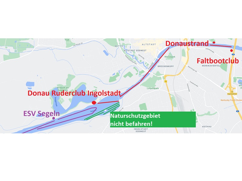 und am Ausstieg z.B. Bootshaus vom Donau Ruderclub Ingolstadt